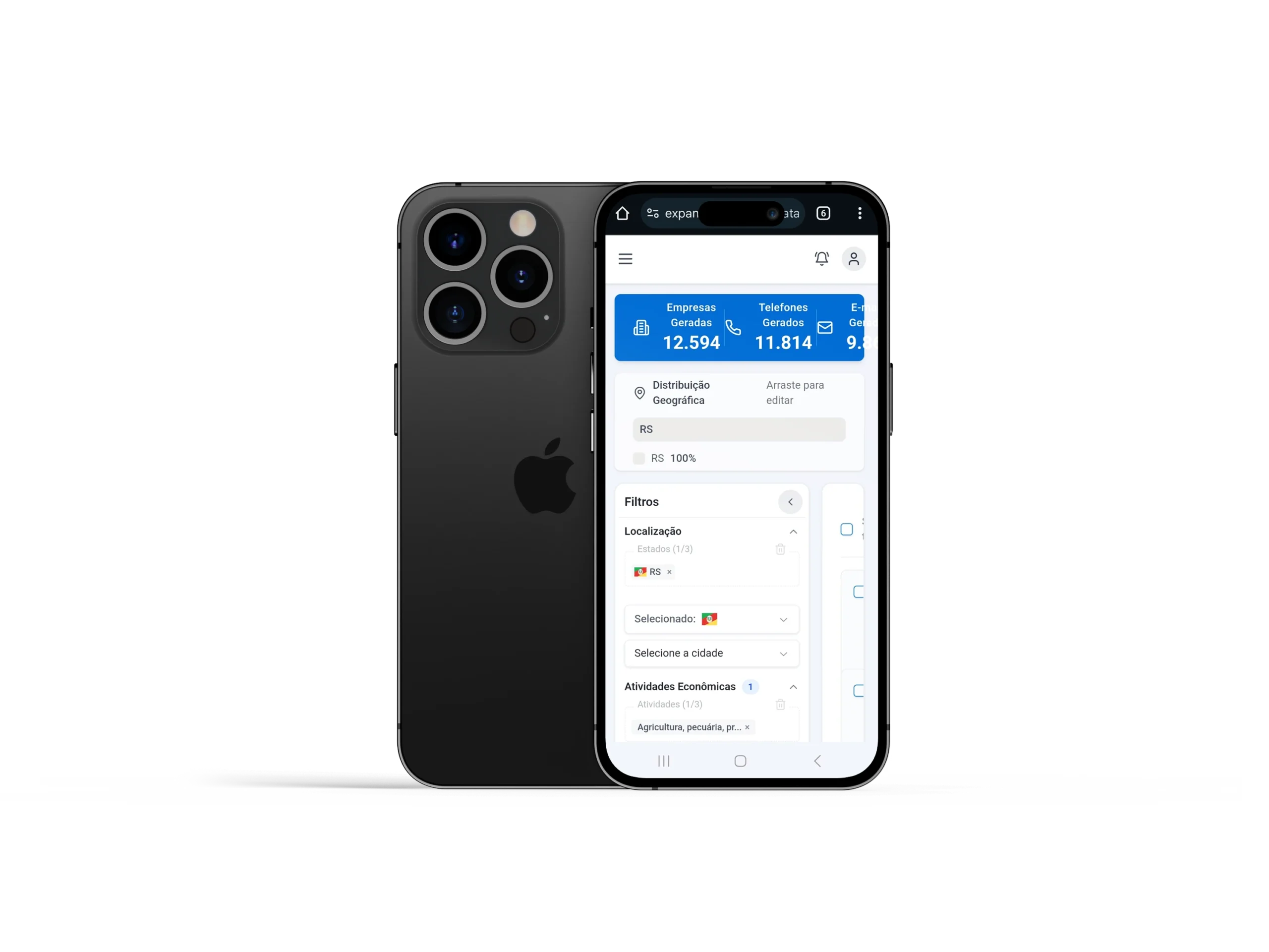 A plataforma te possibilita criar uma lista personalizada para o seu negócio, filtrando empresas do seu interesse por localização, segmento, porte e mais de 15 critérios estratégicos.